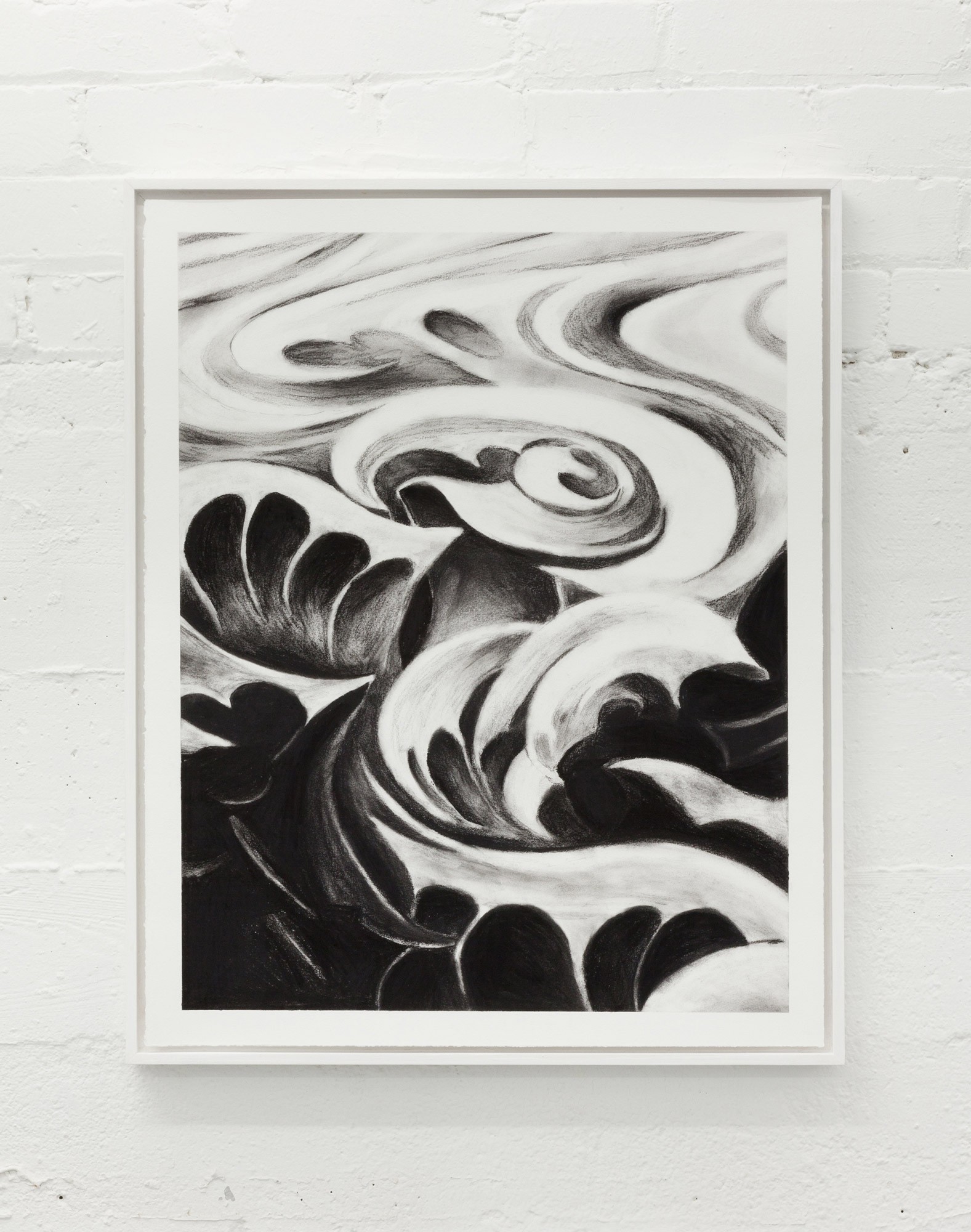 Yet still, sensuous comes to mind. Those abysmal blacks and undulating greys. Such nakedness can’t help but elicit a kind of want and suggest a sort of pleasure. The word sensuous, when it first appeared in John Milton’s Paradise Lost, attempted to avoid the sexual connotations of the sensual; but the association persists. Are these drawings also an effort at evasion? From references unknown, each image insinuates but does not reveal its history. It could be called an act of unification. Or appropriation. Mimicry too, adaptive and assimilatory. It leaves me suspecting that behind the gesture, an image, or this drawing, is a vortex of meaning I have missed - a nonsensuous withholding.