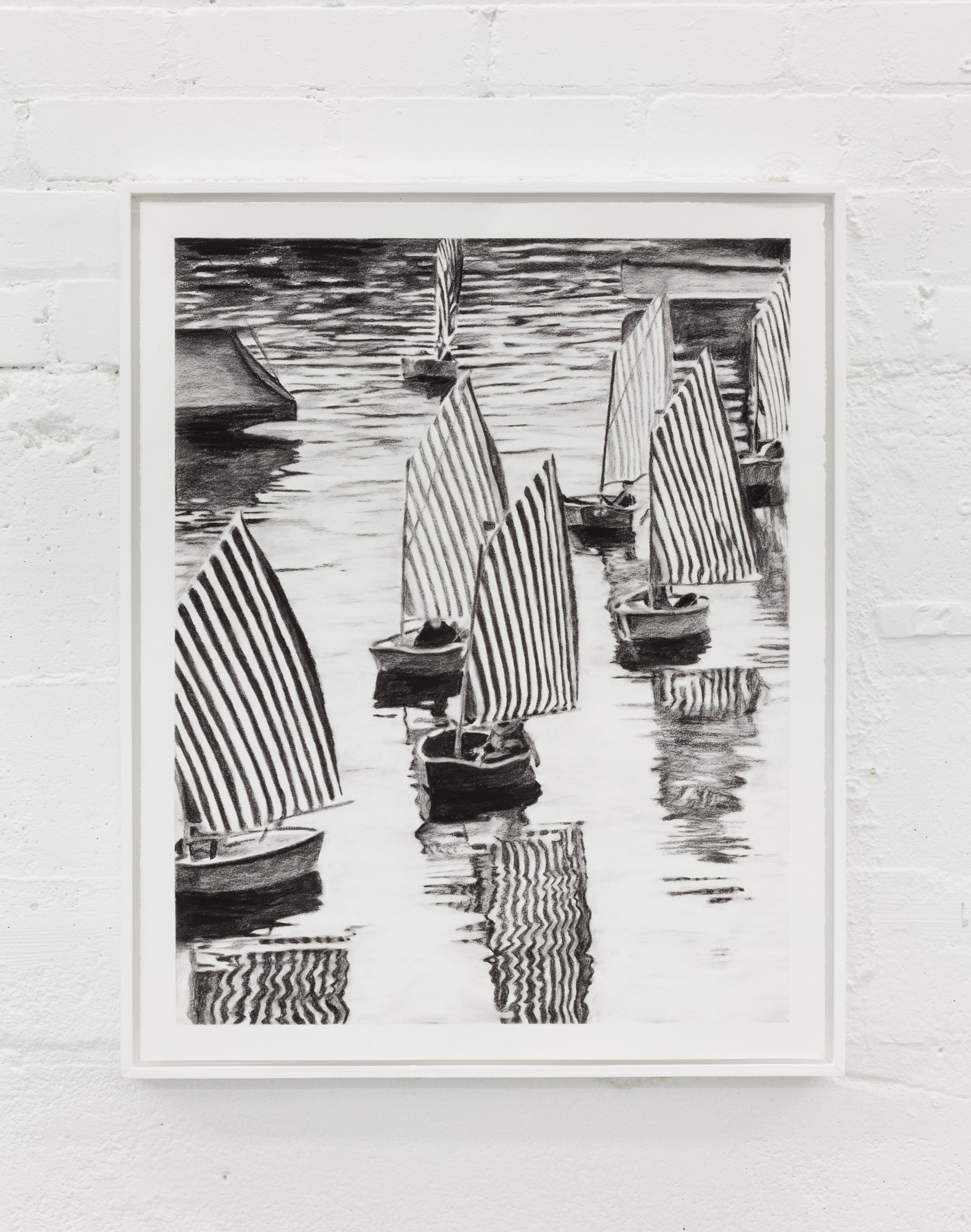I infer a vast and sentimental world from these pictures. A young woman looking out to sea at a future of possibility; a boy betraying the anguish of existence; swirling vortices which hint at tragedies to come; and nine little Optimists gliding across a page of placid water.