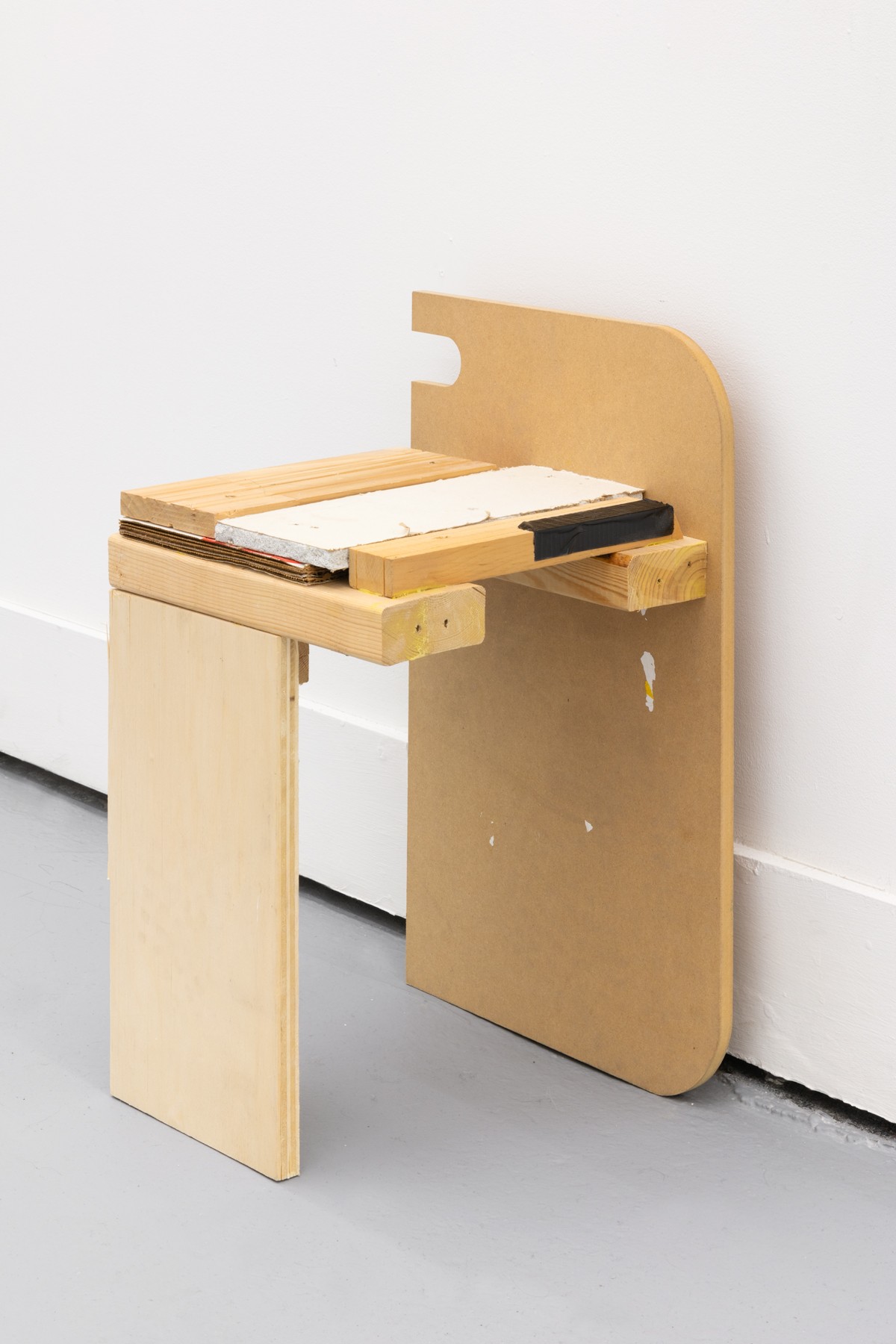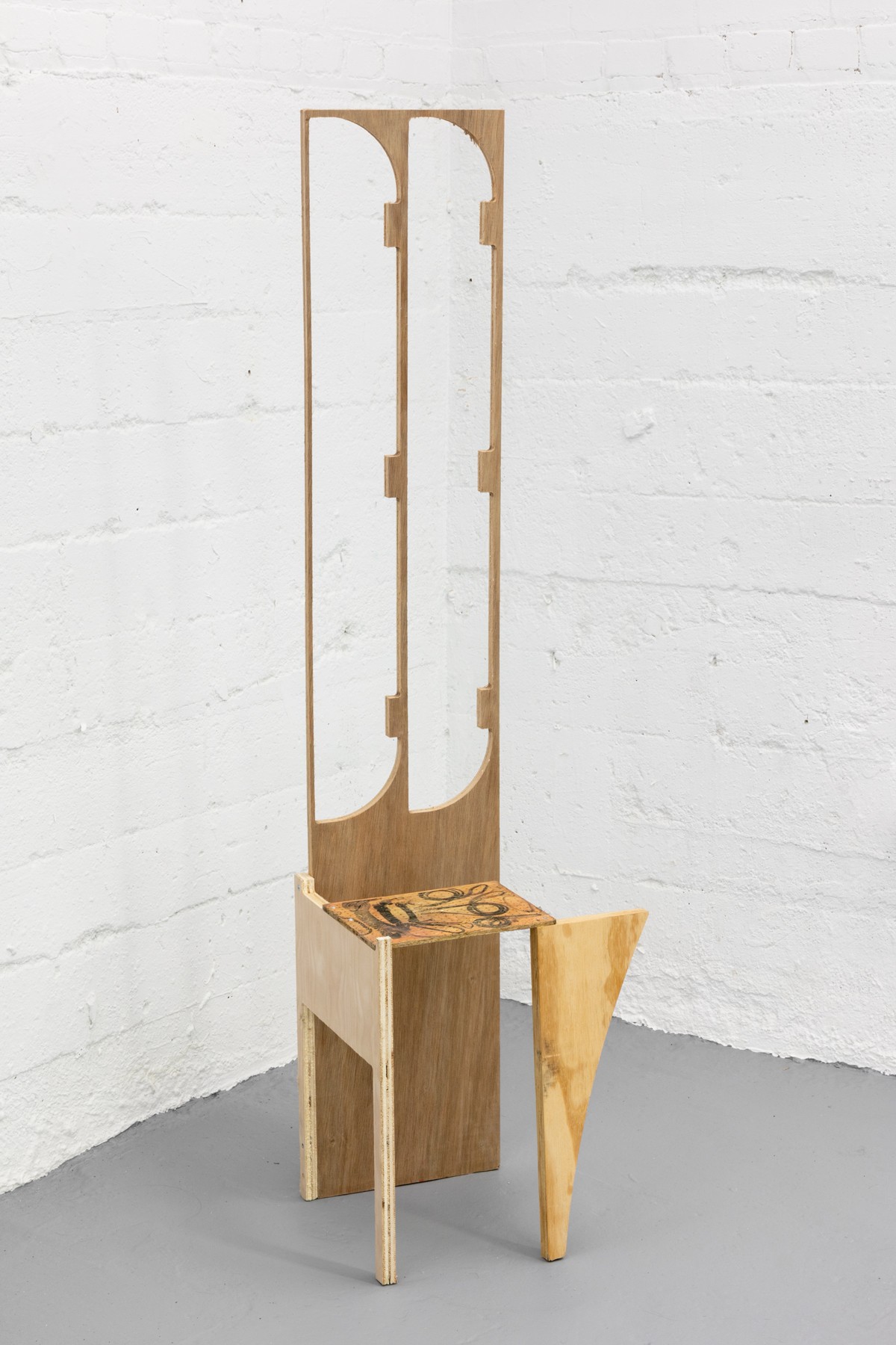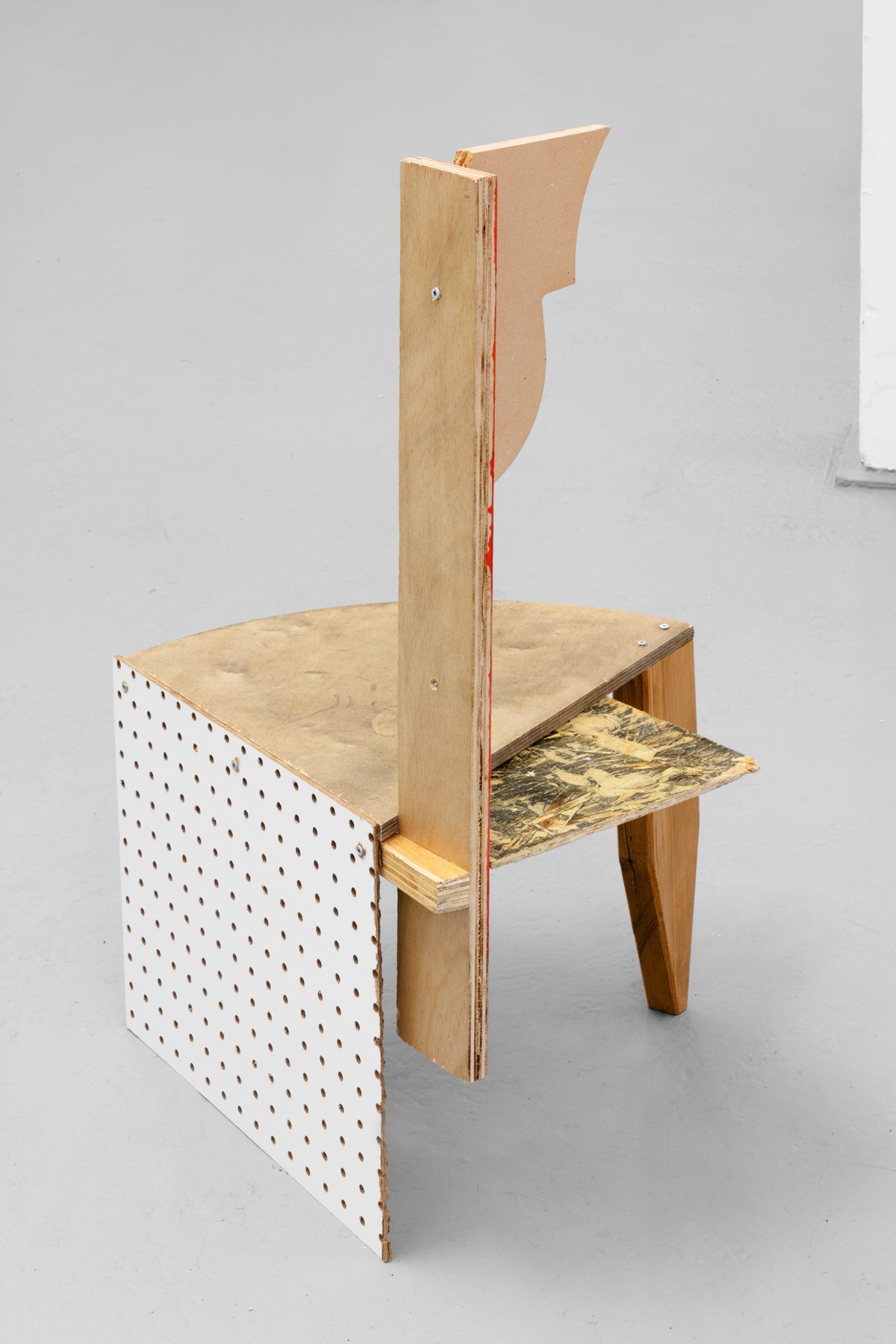 Crockard’s All Thumbs series evolved out of his interest in “readymade” as well as his back-ground in collage. The earliest forms of the series were constructed from off-cuts sourced from a local trade-school and dumpster diving behind a theatre company near his studio. This found material is then reconstructed into different versions of the most ubiquitous of all design objects – the chair. Through this process, Crockard sets both material and conceptual restraints as a way to complicate and extend the possiblities of making.