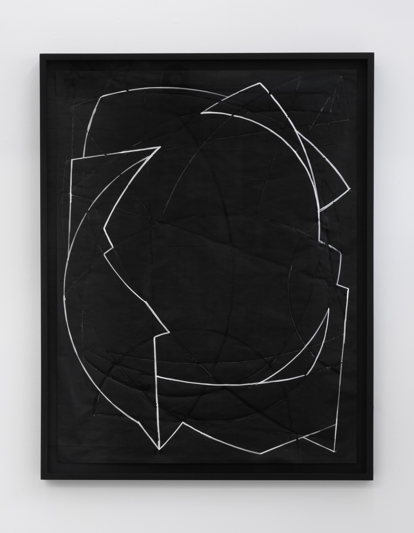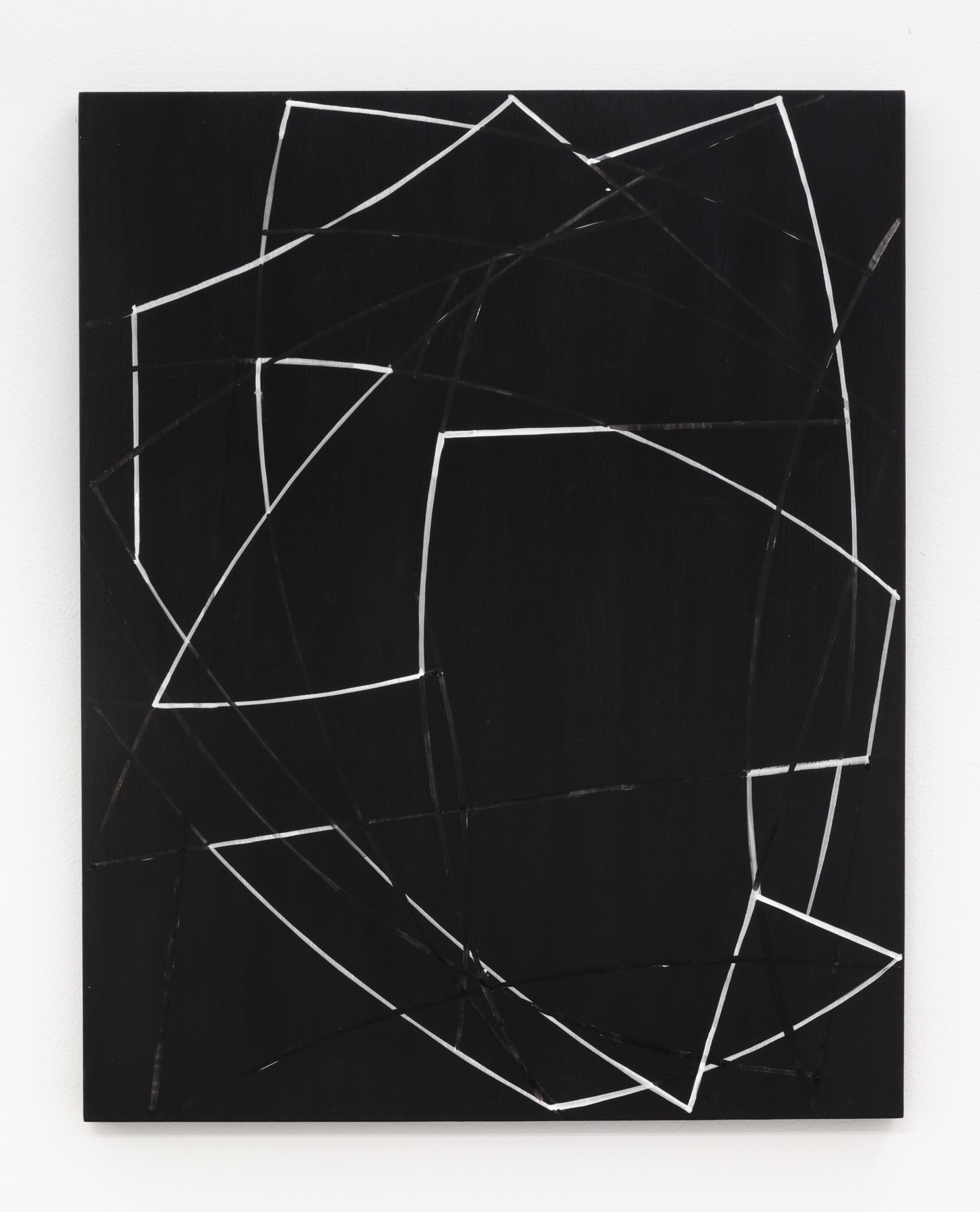 For Aitken, this involves a restrained formal vocabulary that she develops through a continuously evolving set of rules. Marks are made intuitively, but conform to a pre-established framework. The drawing surface is persistently reworked as webs of lines are concealed and new marks take their place. This layering and the traces of previous marks create spatial depth and establish a visible and tactile history within each piece.