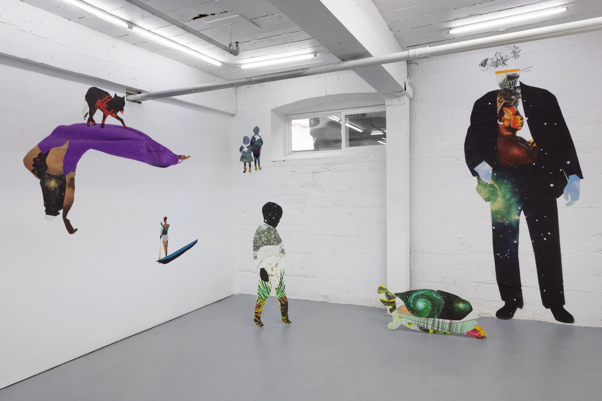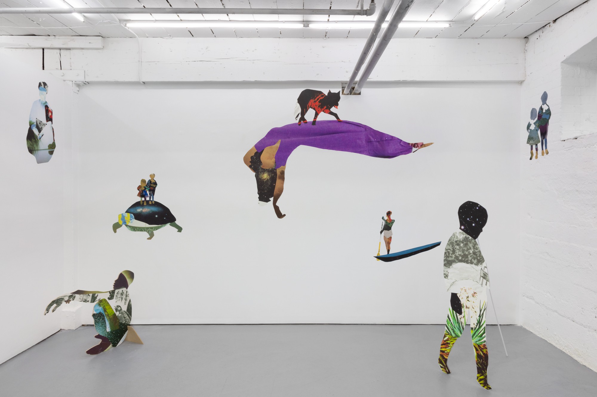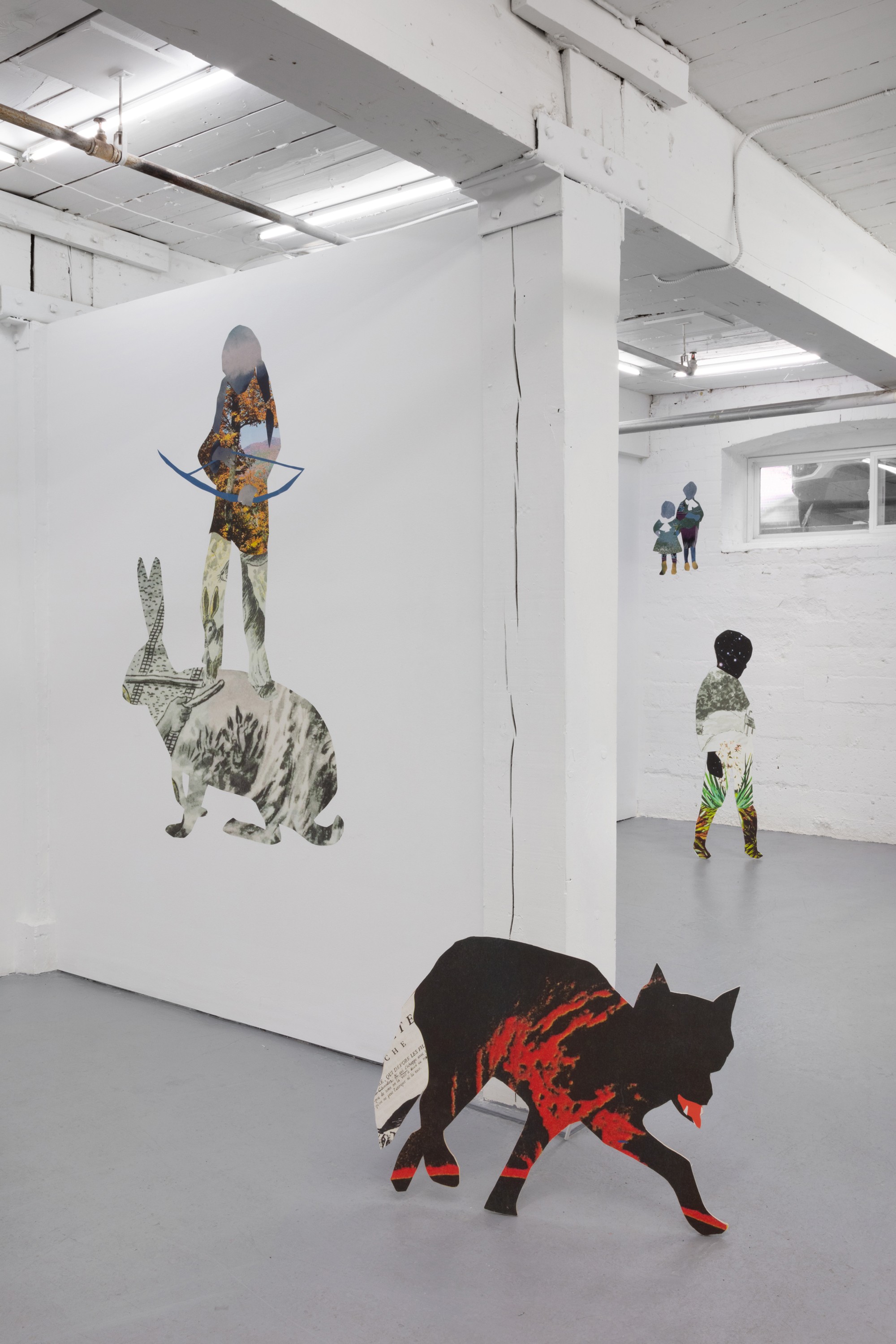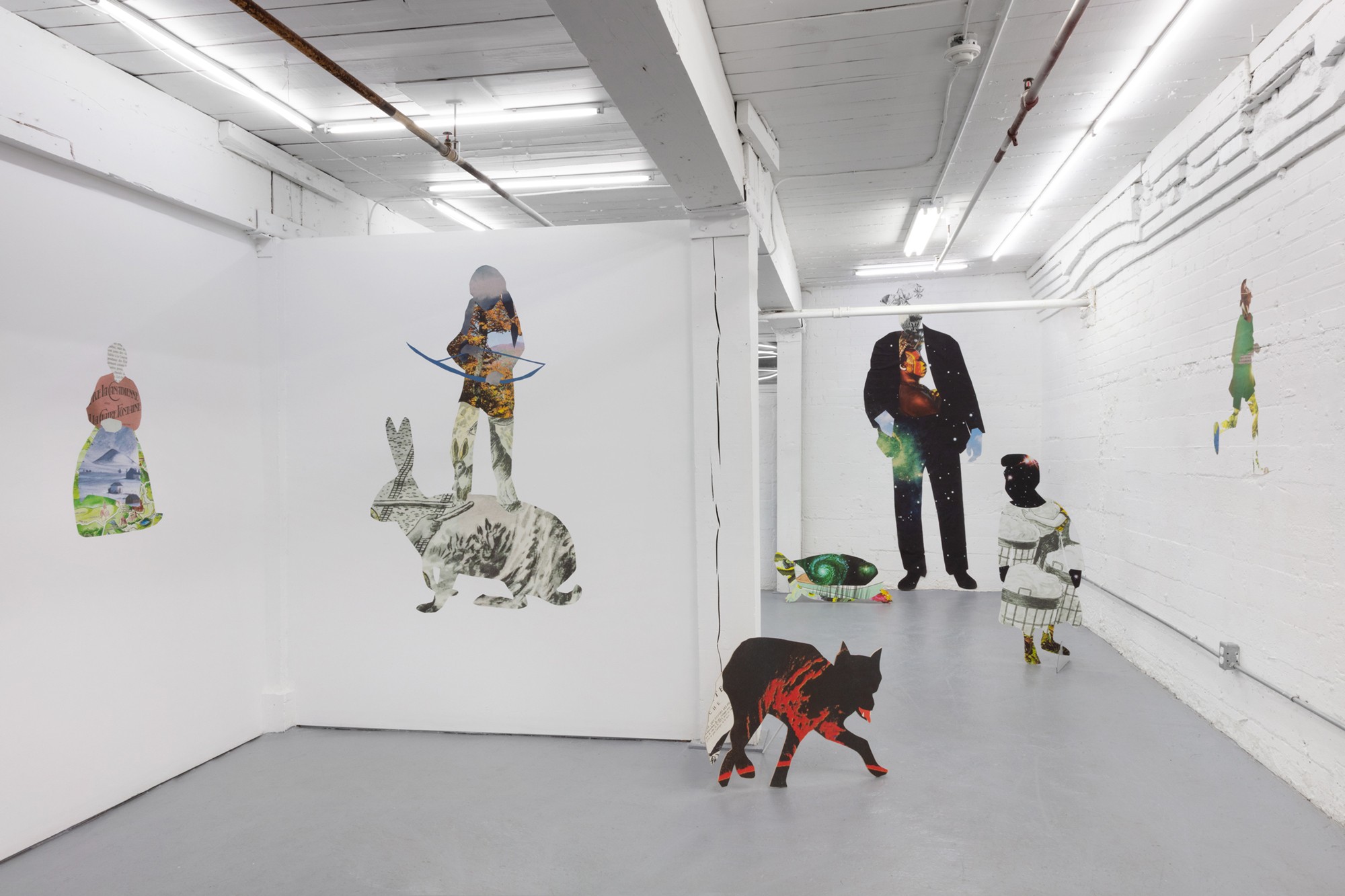 Taking the form of a large scale, site-specific installation, Diallo creates an immersive environment with a multitude of characters. Employing a mix of both collage and sculpture, the silhouettes of human and animal forms are constructed from a variety of source material. Spanning science, literature, and historical photography, the characters within the staging reference a diverse set of stories — extending to creation myths, autobiographical accounts and forgotten histories.