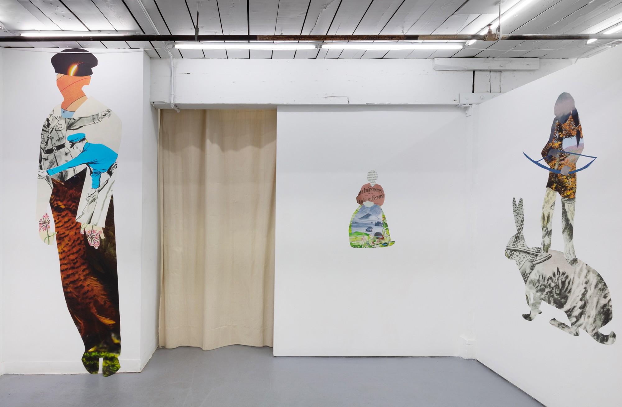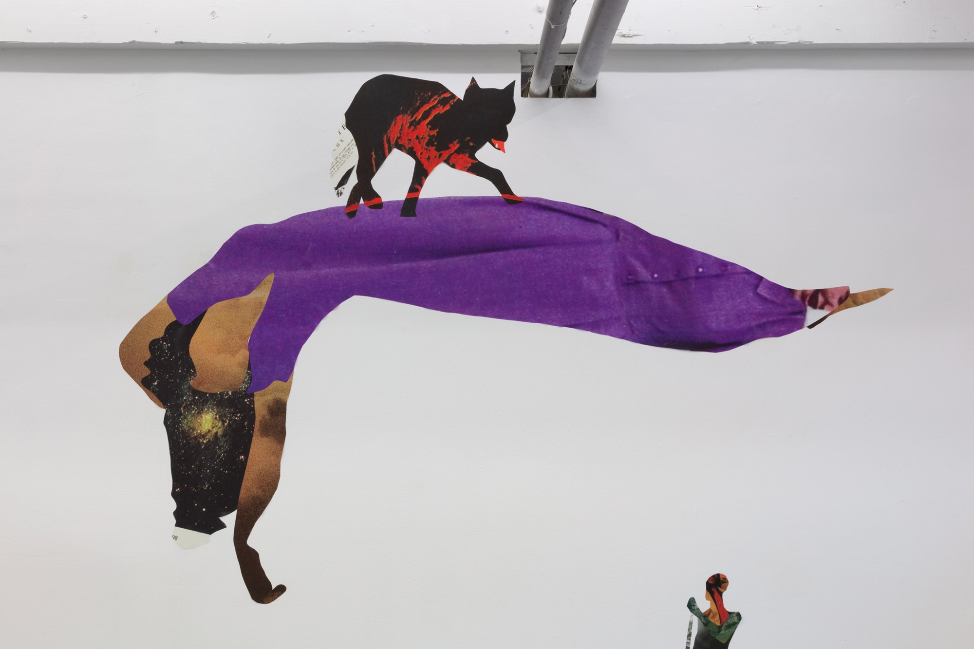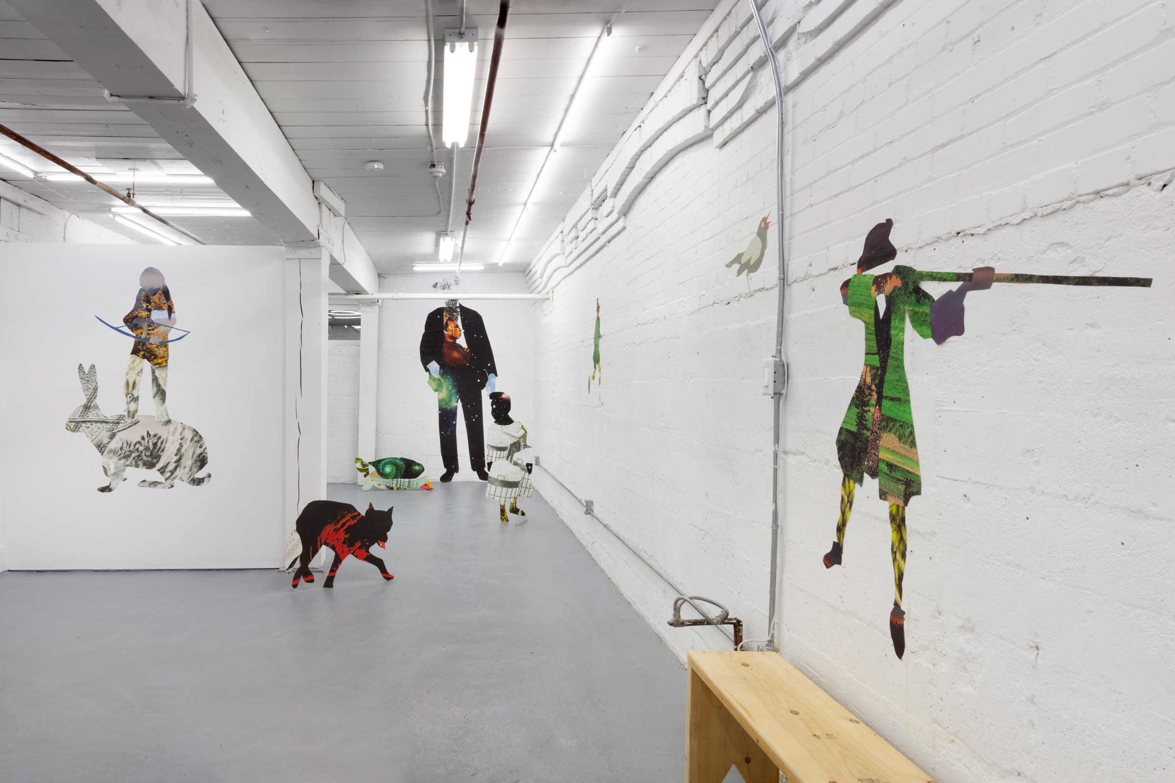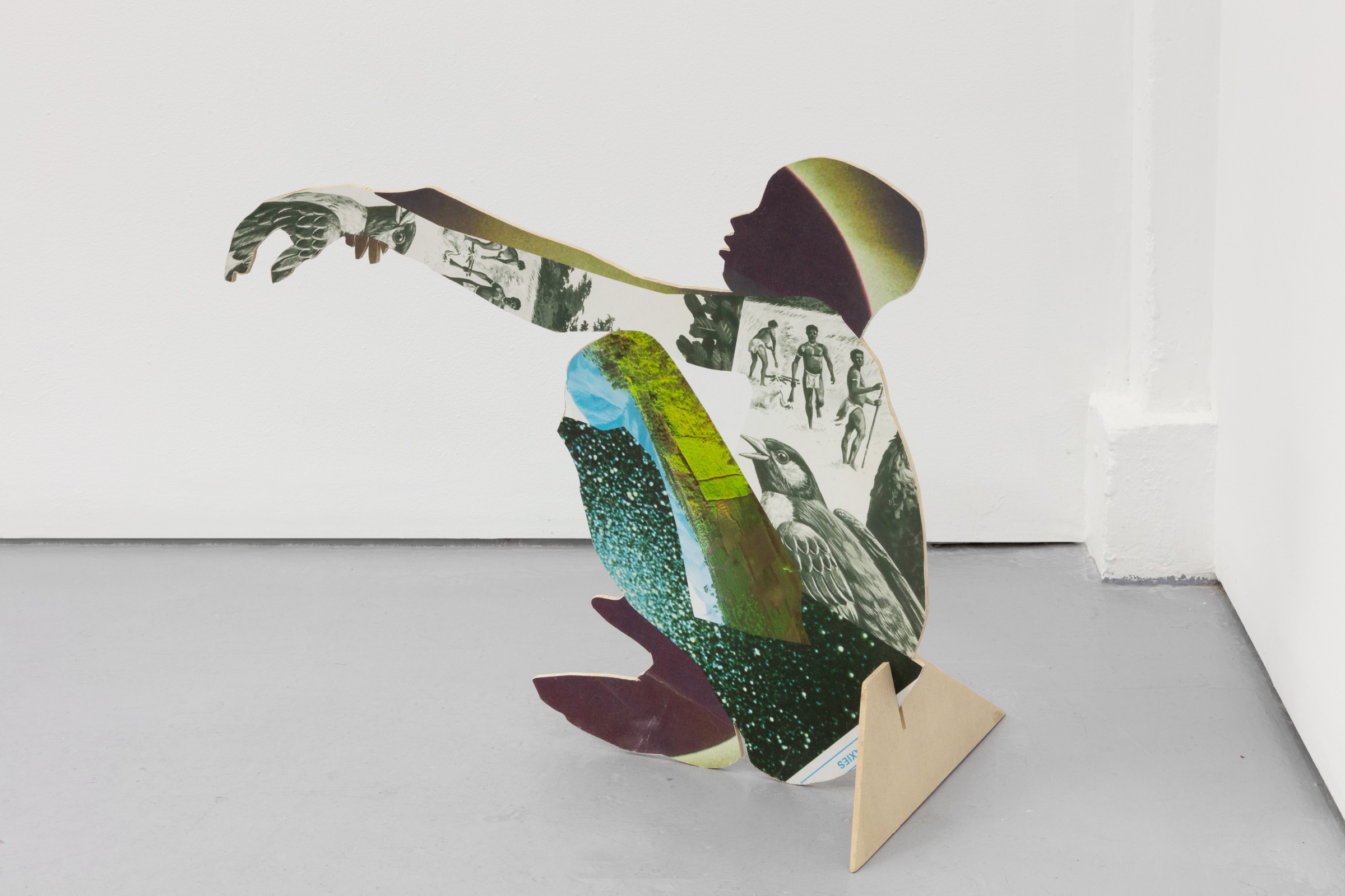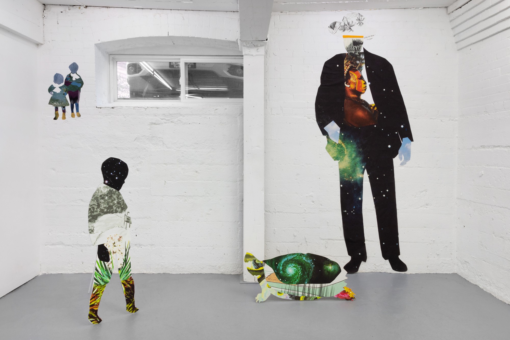 Taking the form of a large scale, site-specific installation, Diallo creates an immersive environment with a multitude of characters. Employing a mix of both collage and sculpture, the silhouettes of human and animal forms are constructed from a variety of source material. Spanning science, literature, and historical photography, the characters within the staging reference a diverse set of stories — extending to creation myths, autobiographical accounts and forgotten histories.