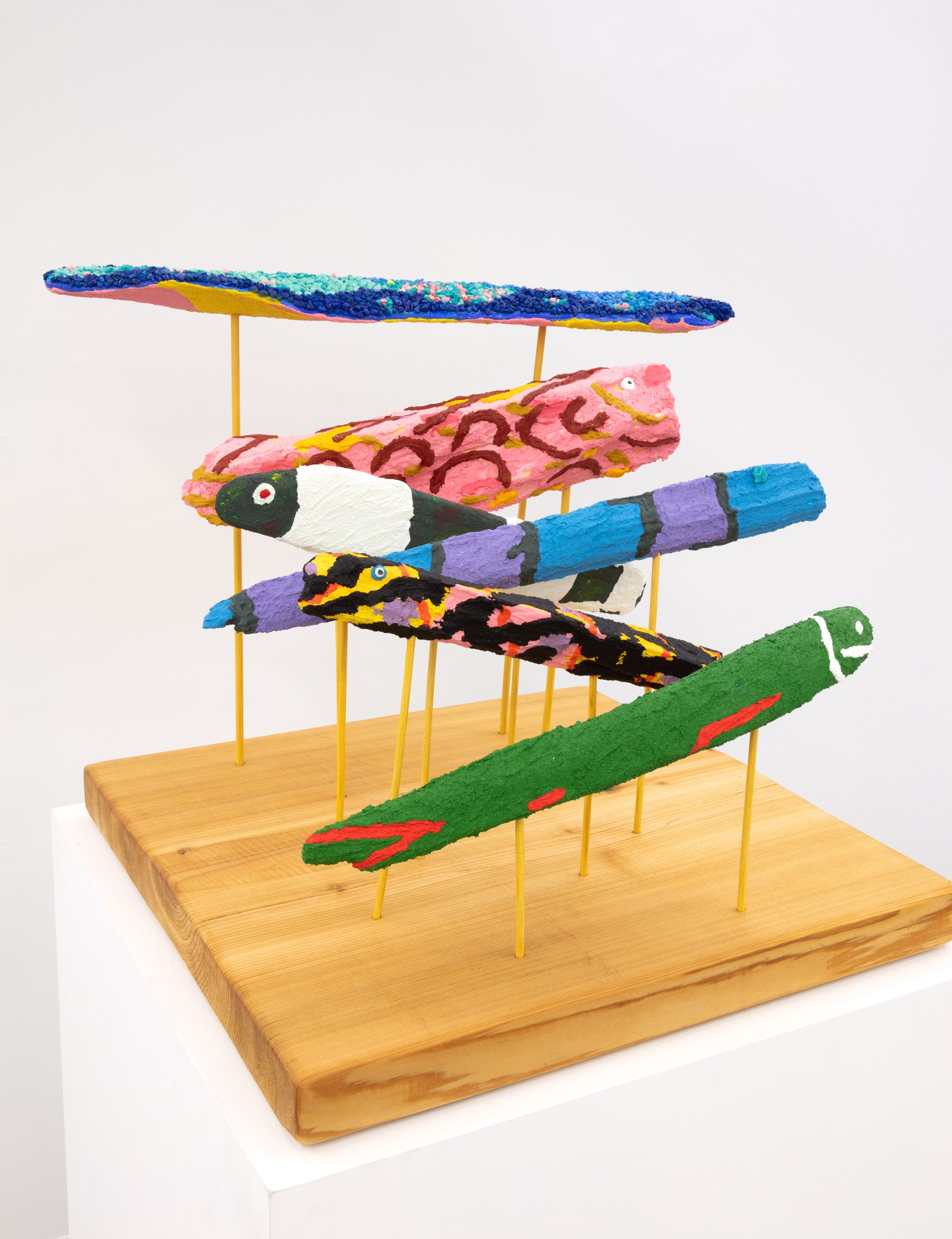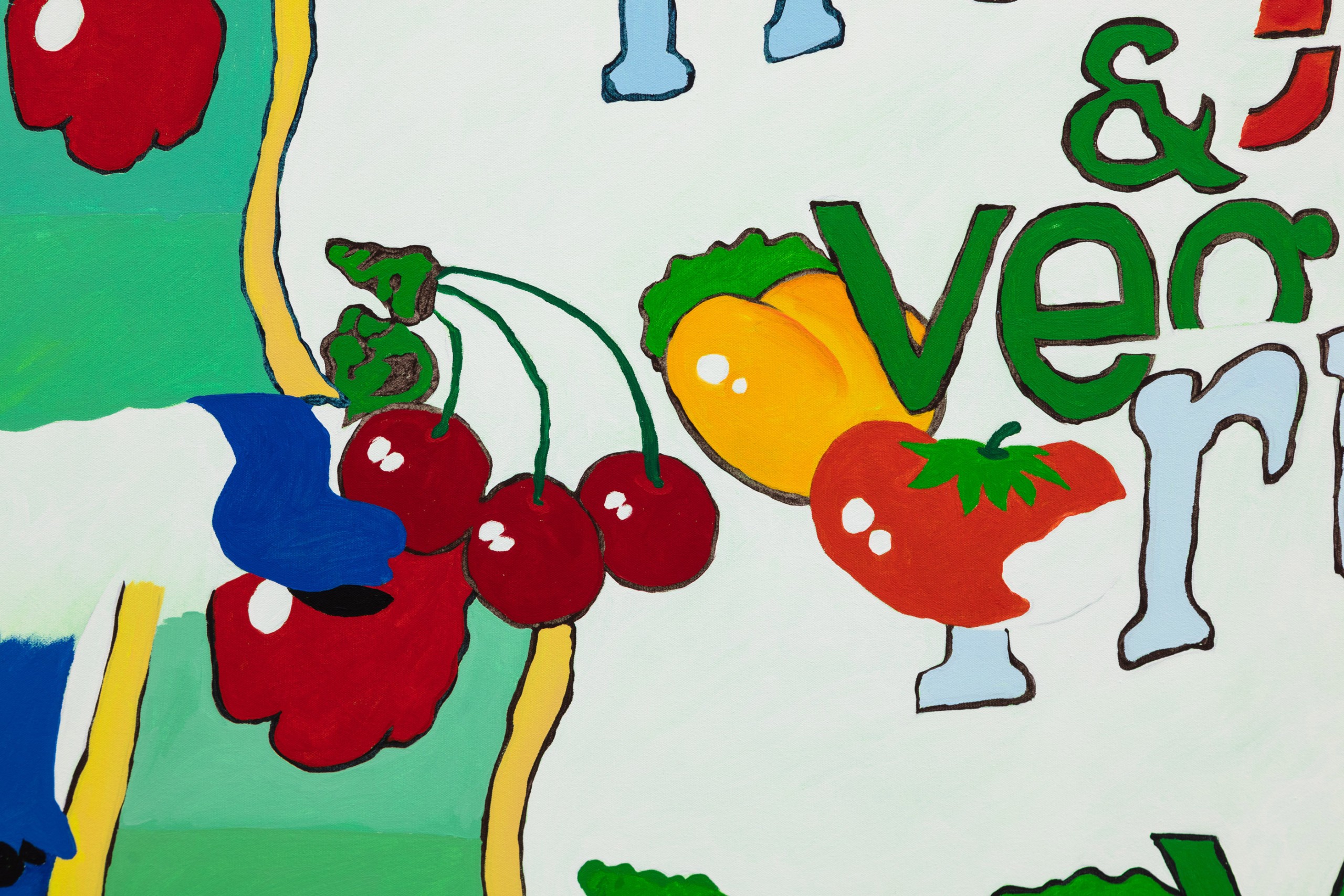 In this most recent body of work, Ramsay directs our attention to the local landscape. Focusing on roadside fruit stands, provincial parks, and wildlife native to the BC coast, he grounds his work in a sense of place, while at the same time creating complex, often fantastical compositions where seemingly disparate elements co-exists on a flattened singular plane.