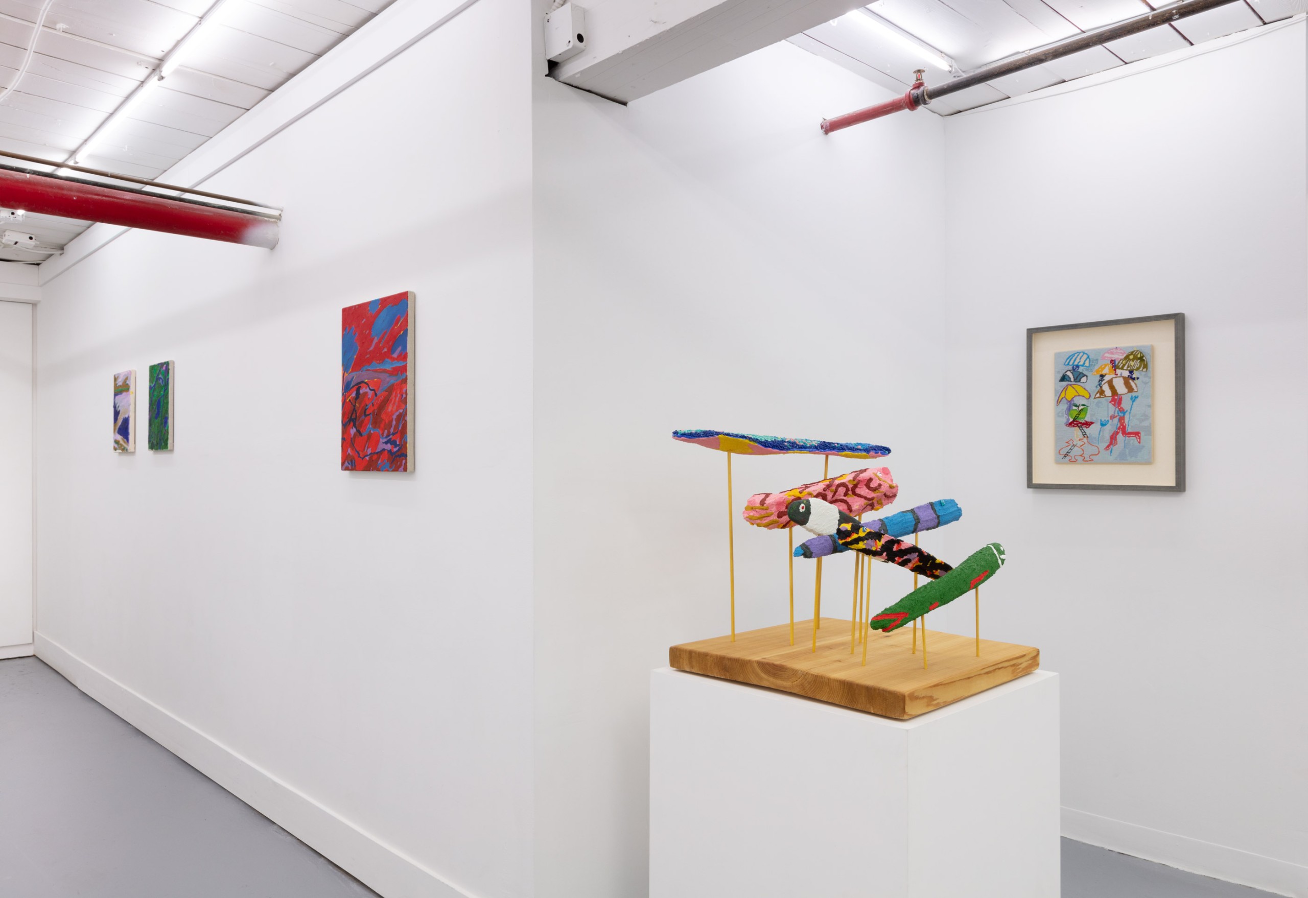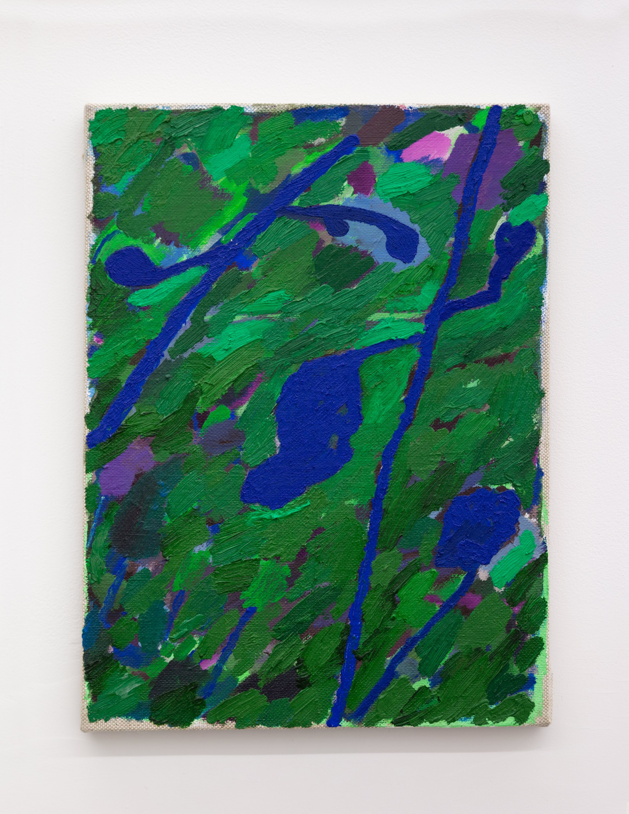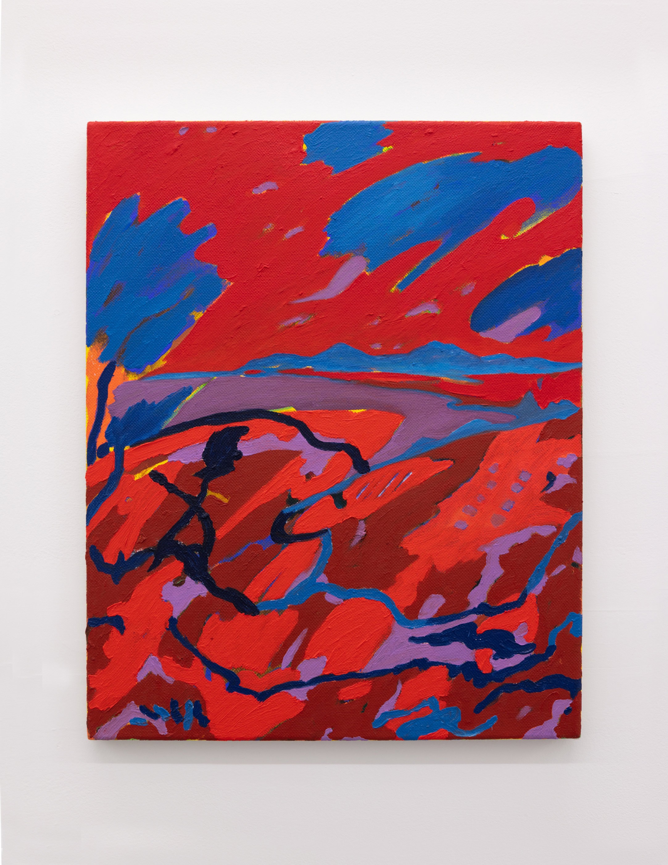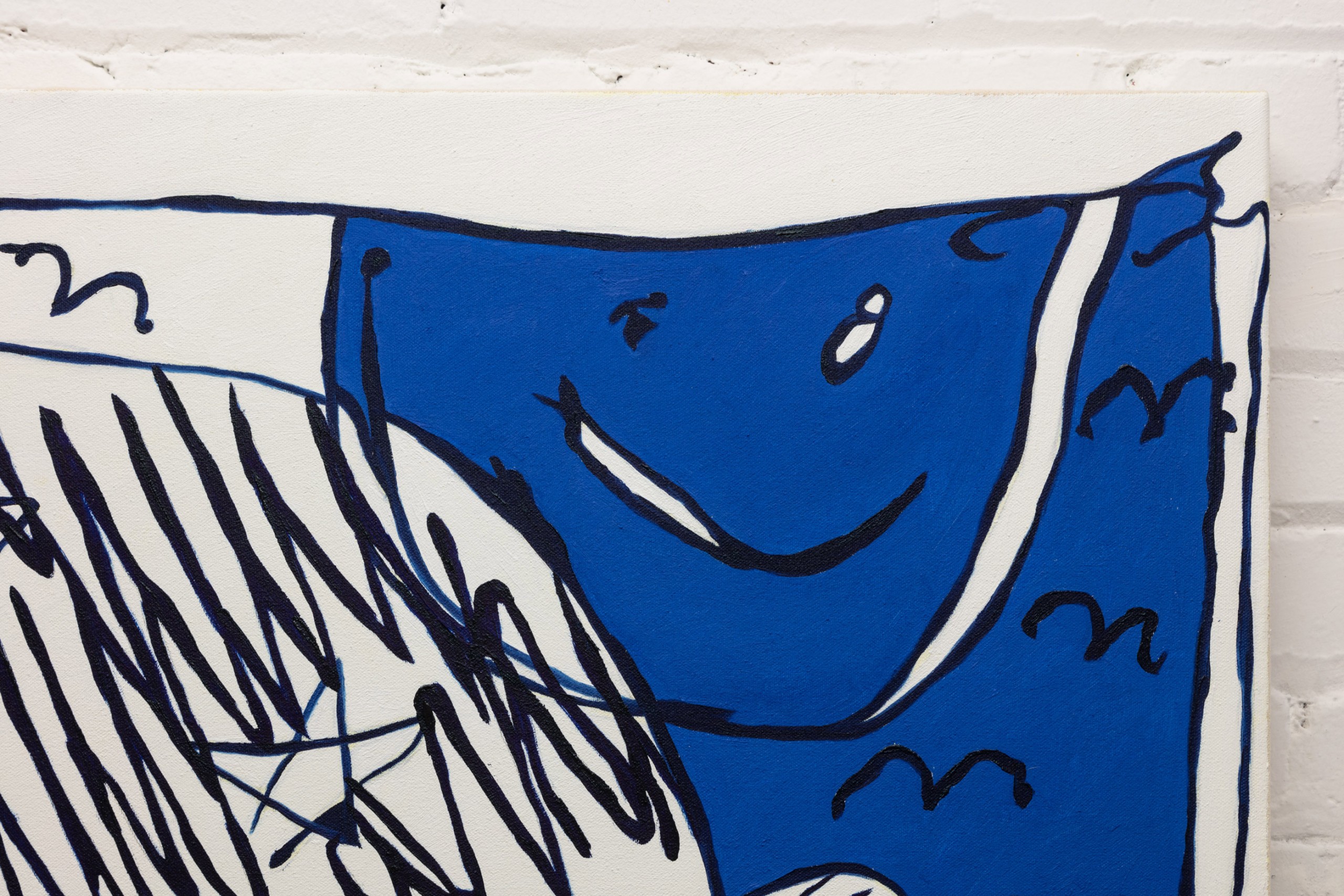 Playing with surface, colour, and form, he imbues the paintings with an almost frenetic energy, employing brush strokes and mark making that oscillate back and forth between the digital and physical sphere.