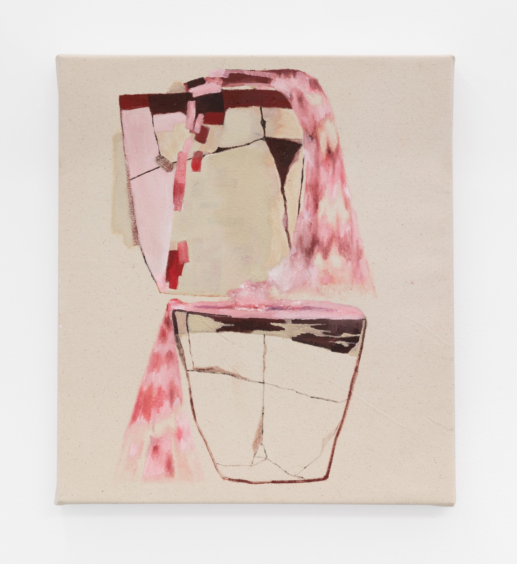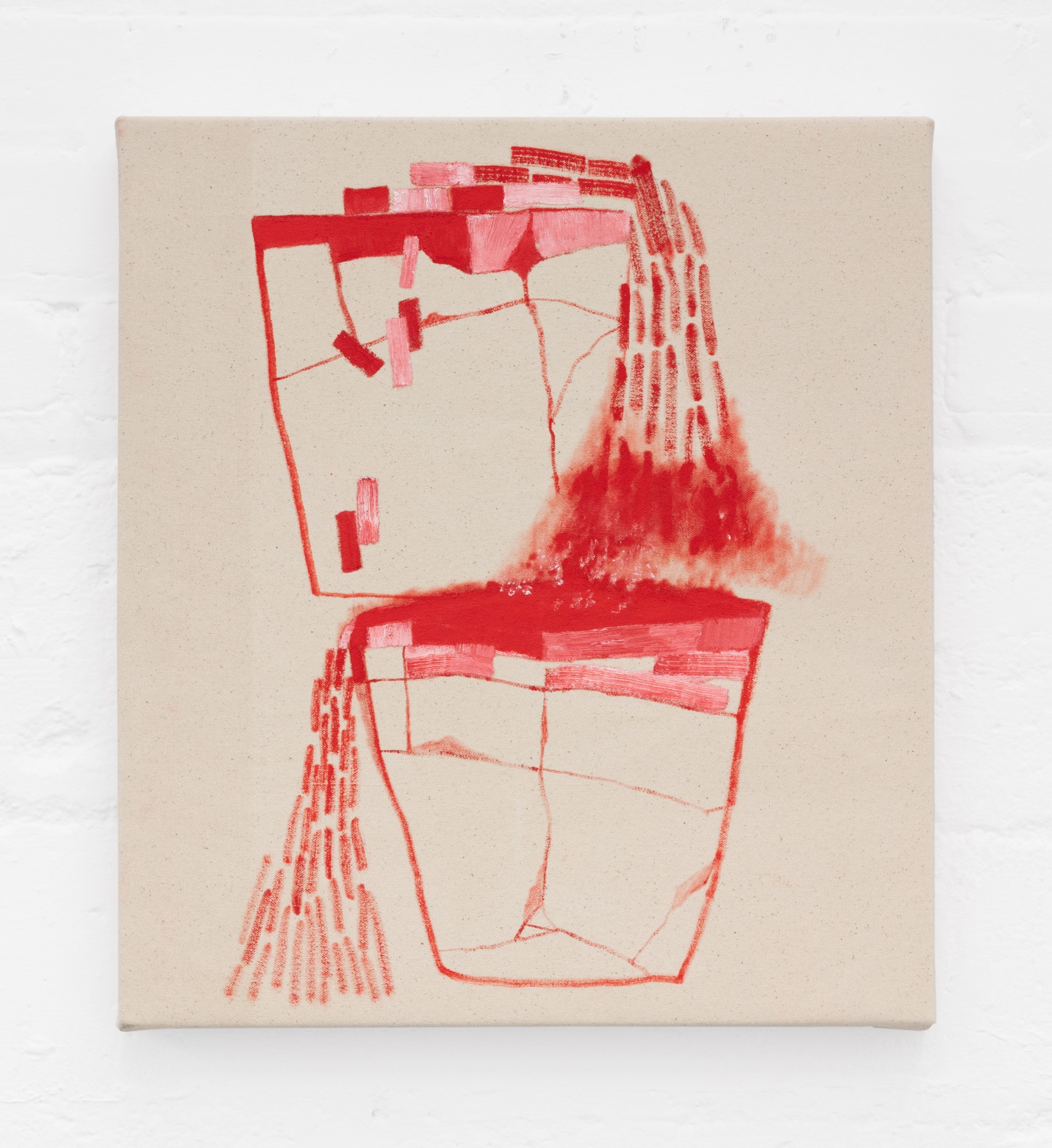 Nadia Gohar’s practice explores the ways in which material culture can become a repository for often overlooked or marginalized histories. The two paintings A Gallon and A Gallon (red) both depict cisterns, traditional receptacles for storing and transporting water. The earliest versions of these vessels date back approximately 12,000 years ago and were crucial in the development of farming and the establishment of more permanent communities. For Gohar, water becomes a metaphor that is prevalent throughout her practice – referencing a more circuitous, transitional, and at times ephemeral understanding of history, movements, and culture.