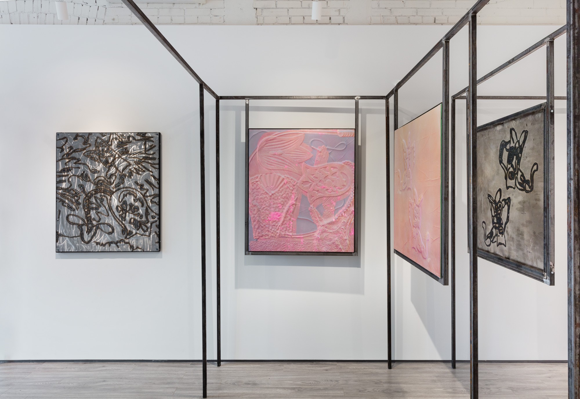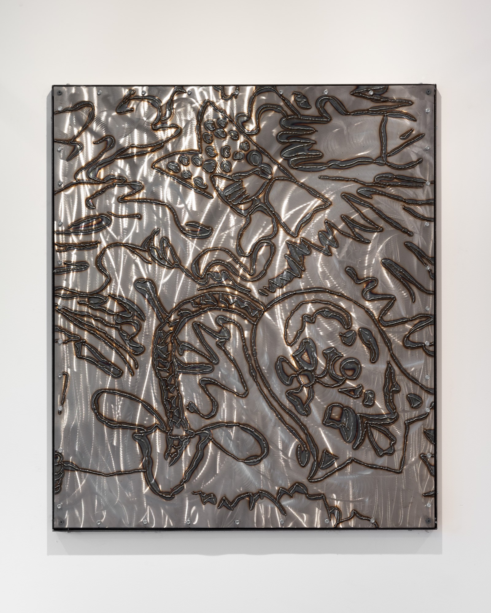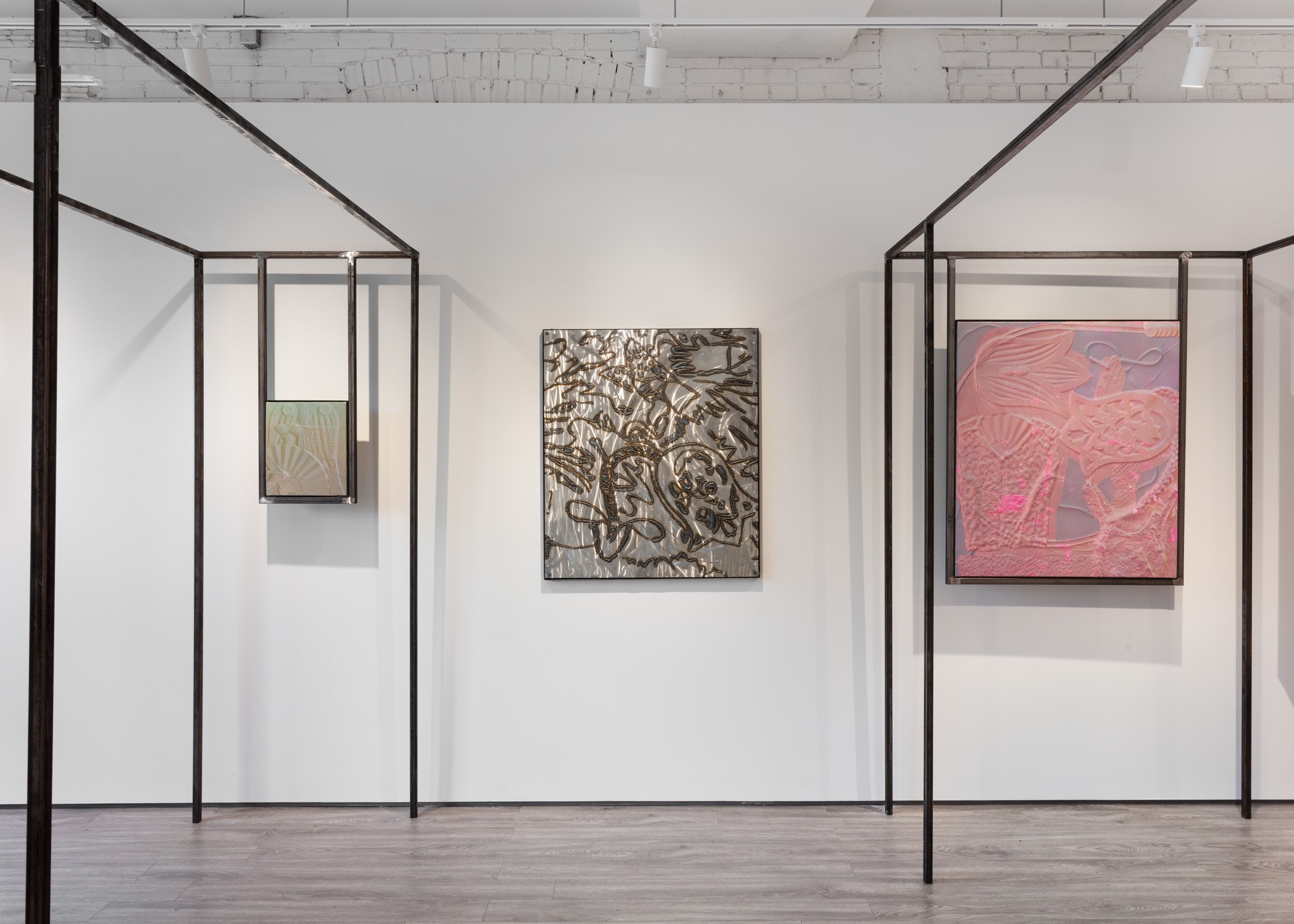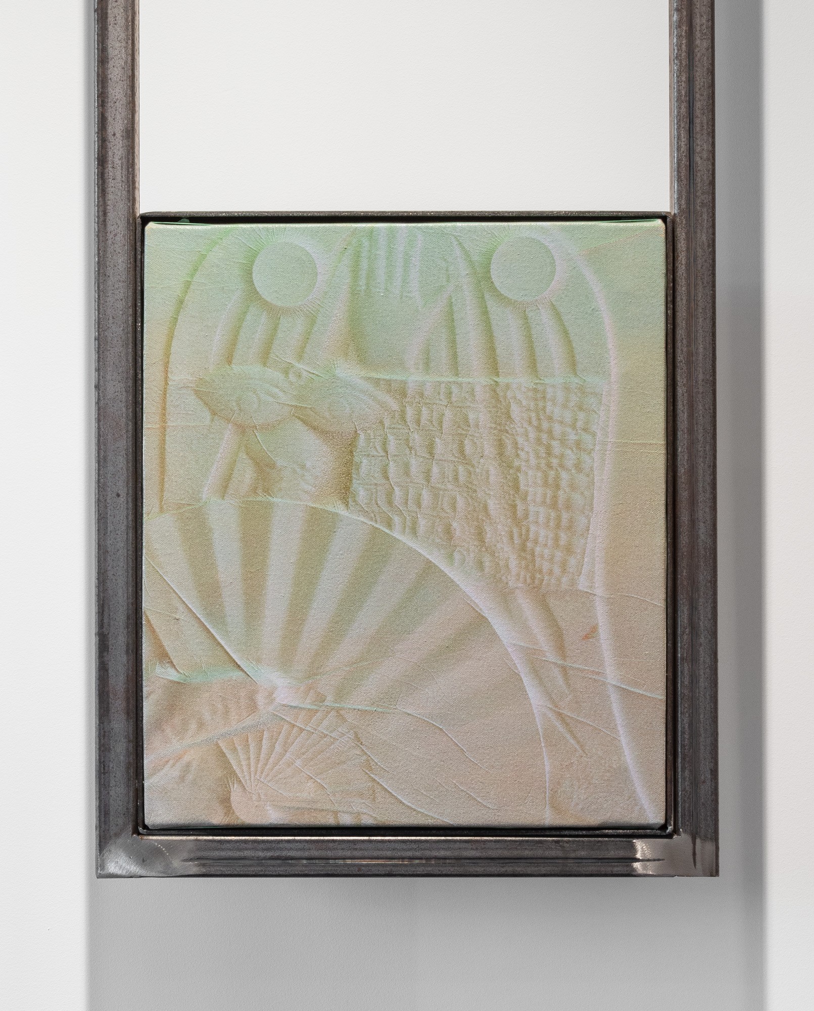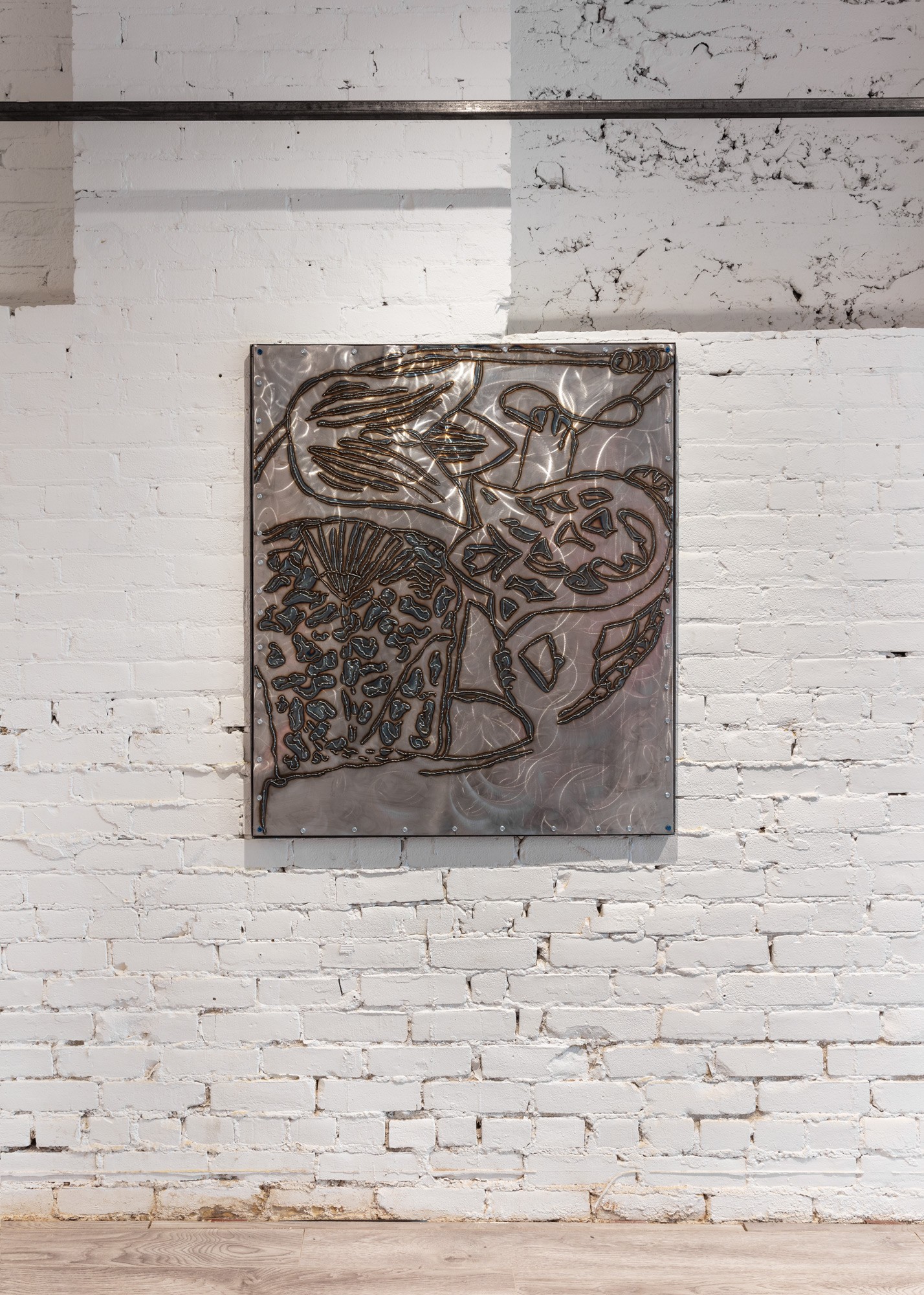 The liminal spaces — negative, outlines, and otherwise — whisper potential and possibility. In the opening sentence of his statement, Teto references the index as suggesting “a kind of connective tissue through history.” His work’s preoccupation with resonance, histories, and the grammar of objects is on full display here, as Azza extends these themes into her engagements with Teto’s work that still “resonate[s] with traces of a still-trembling past.”