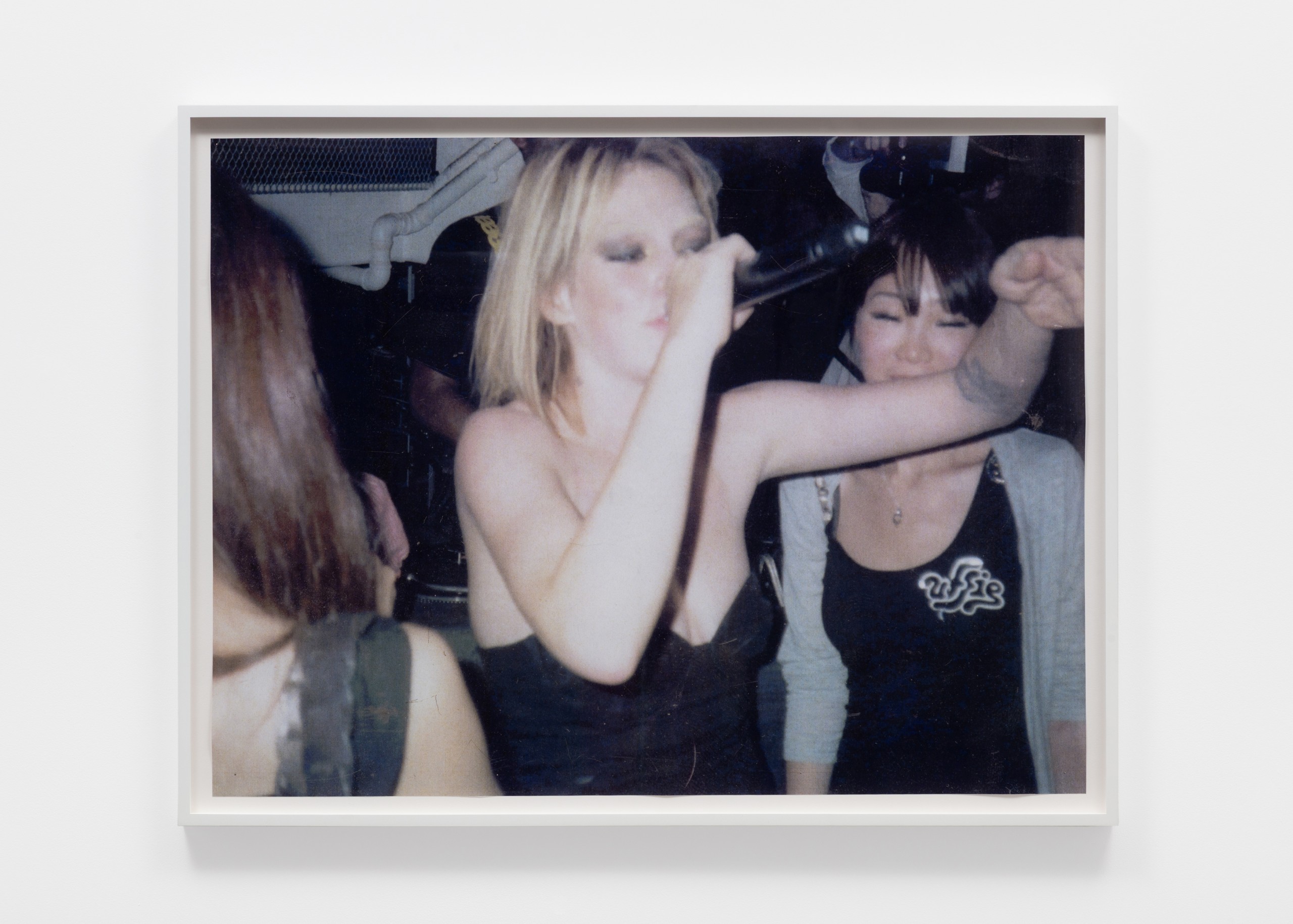 I gravitate here towards an image of Uffie taken by Holmes’ taken by an eighteen year old Holmes in Hong Kong. Growing up in the late aughts, in the non-space of Vancouver (to loosely paraphrase Lisa Robertson’s description of the port city in the opening chapter of The Baudelaire Fractal) indie darlings like Uffie were ever only really encountered in the space of party photo blogs—a seductive feed of photographs suggesting the possibility of bohemian life elsewhere. Now, here, I feel closer to the subject than ever but all luster has given way for a film of sweat.