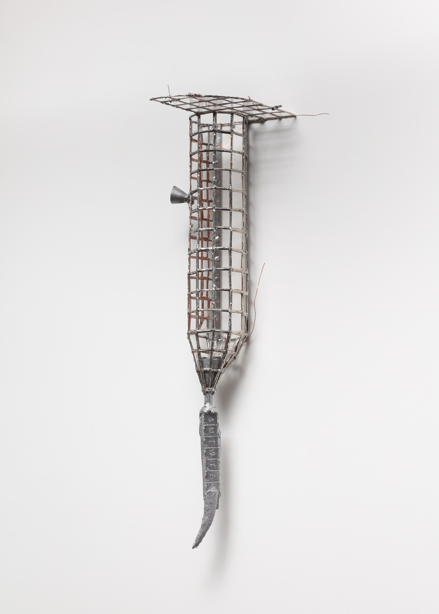 Cadenced in stained glass, a disc inset with a metallic extrusion, like a minute hand–almost a ticking clock–beside its mechanomorphic funnel sibling–measuring and excreting language at its extremity for re-digestion–become temporal-linguistic machines which might administer and constrain the agency of the figures on the floor.