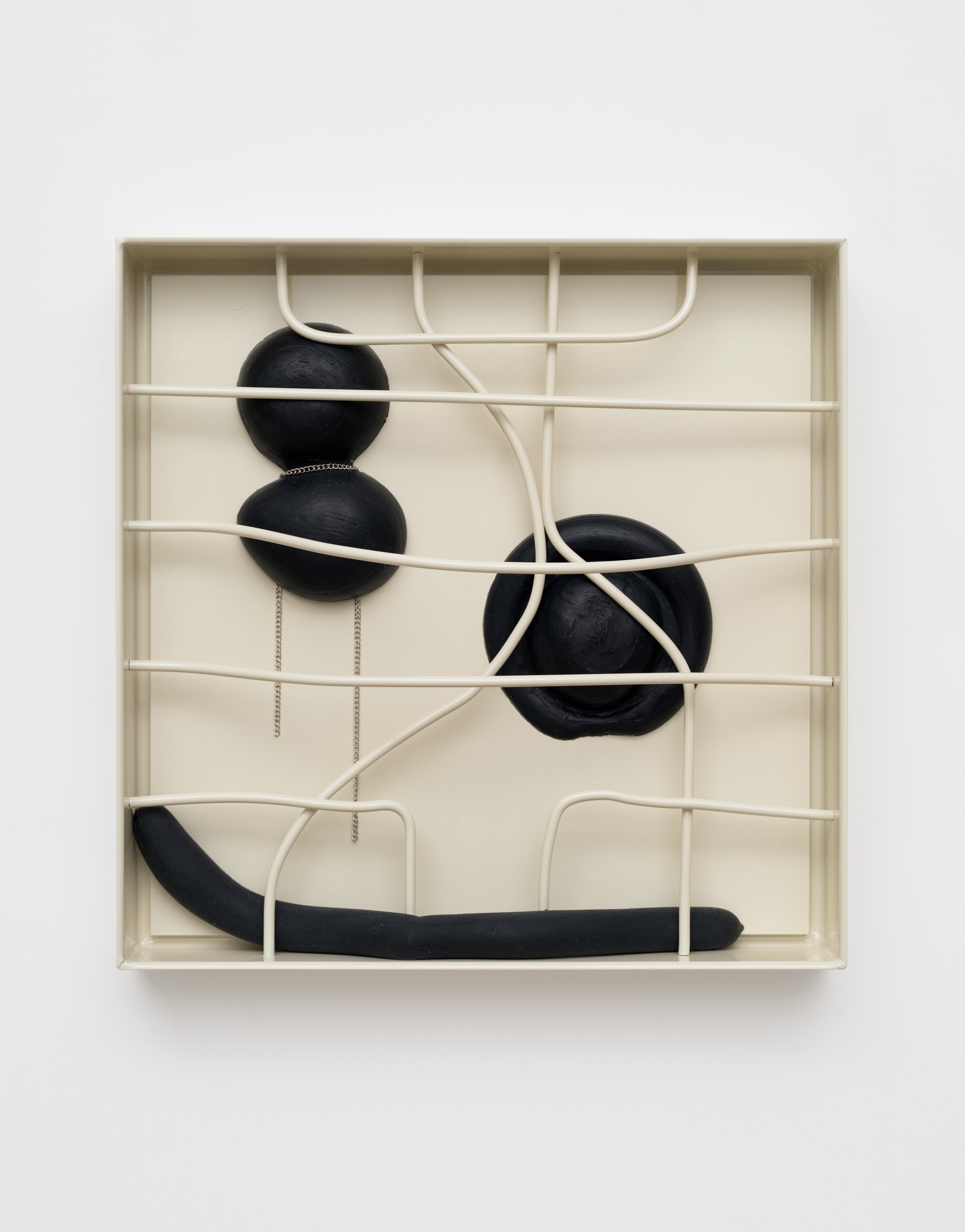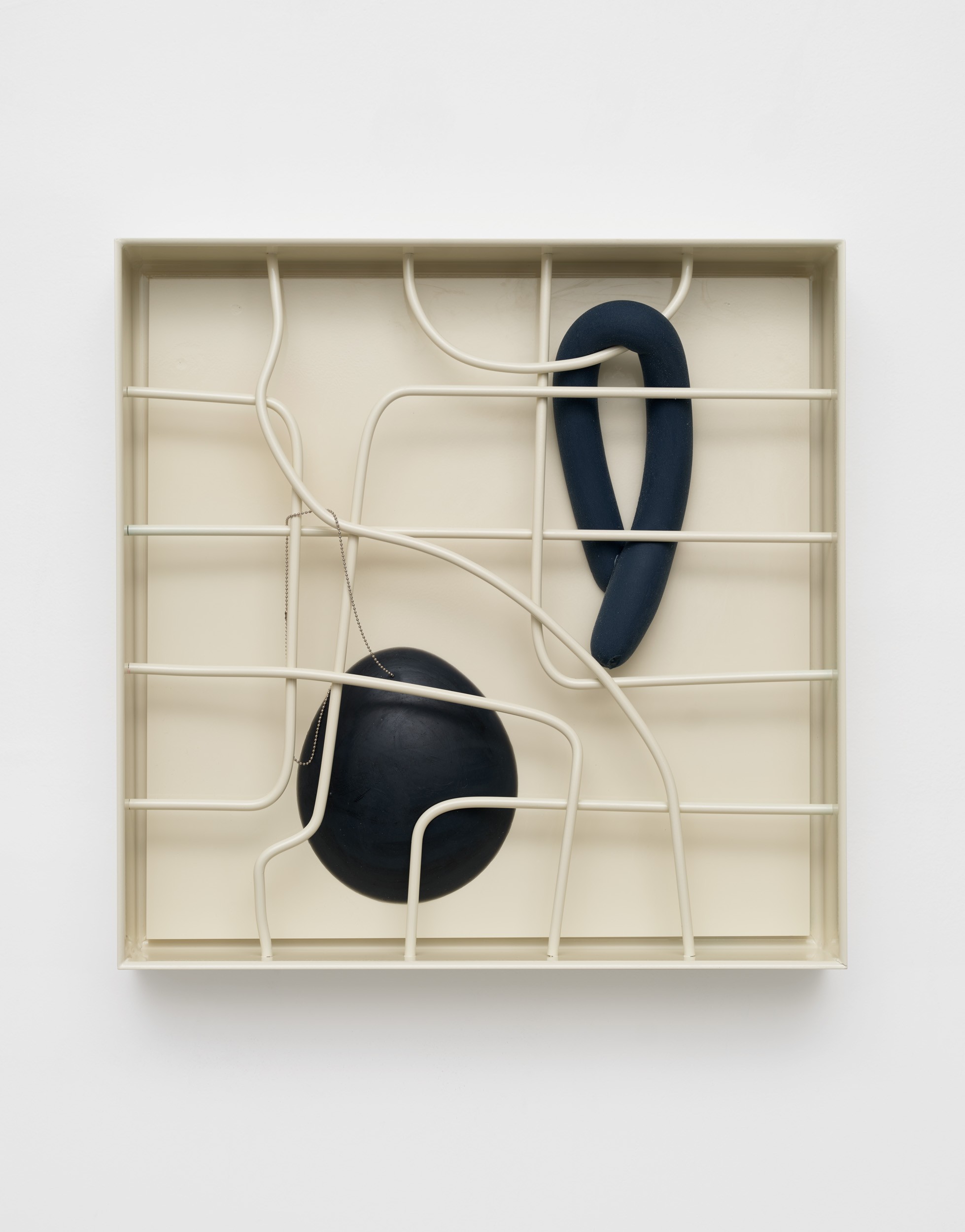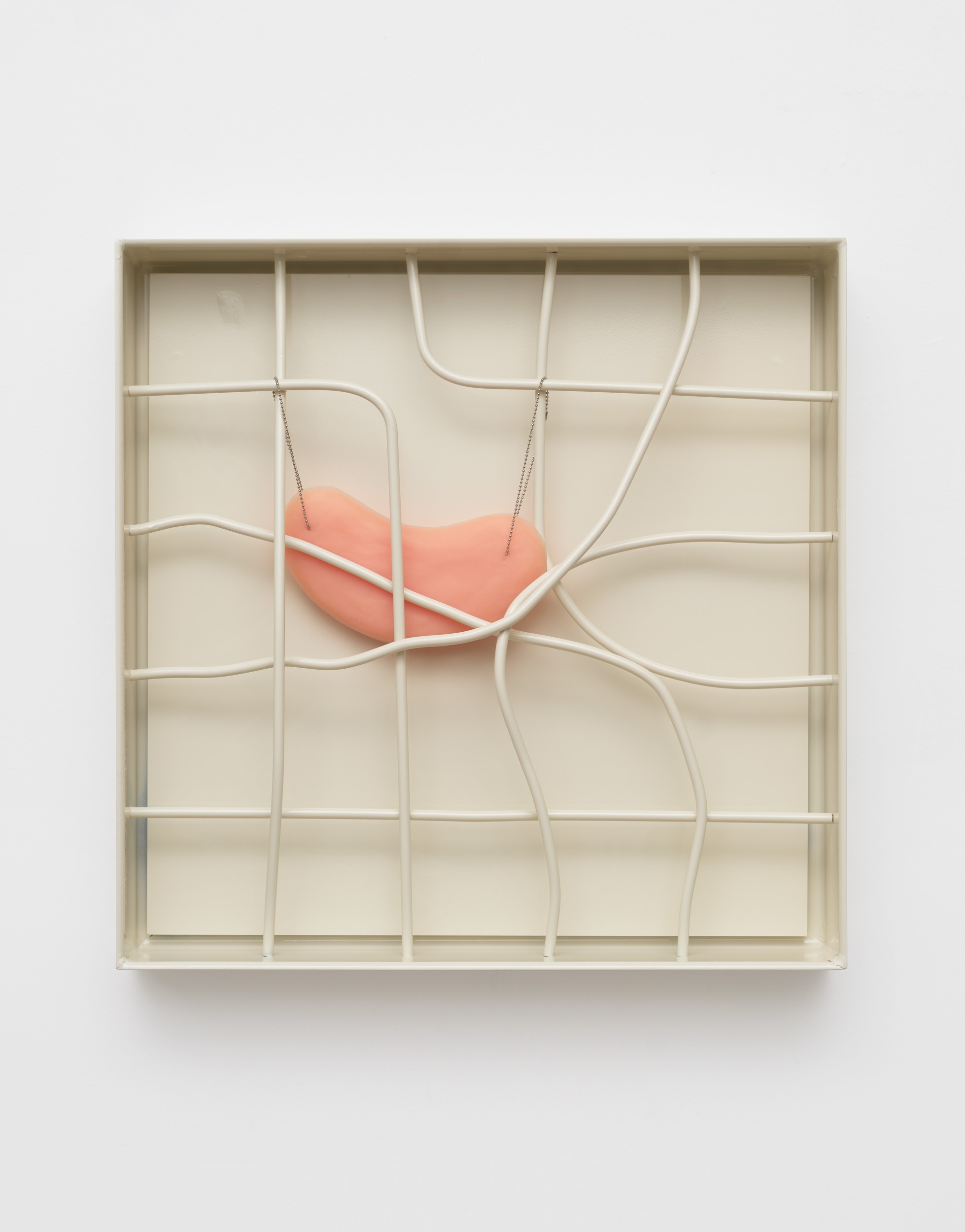 These perceptual qualities inform Yellin’s most recent work. Using absence and it’s framing, she examines highly personal yet universal questions. How does one begin to process grief? What does it mean to carry the psychological weight of loss? Her works hover back and forth, oscillating between their rigidity and their softer more organic elements. This duality is a hallmark of Yellin’s practice: structures and systems are created, and then diverted. Hard metal braces against soft silicone. Industrial materials reveal traces of the handmade.
