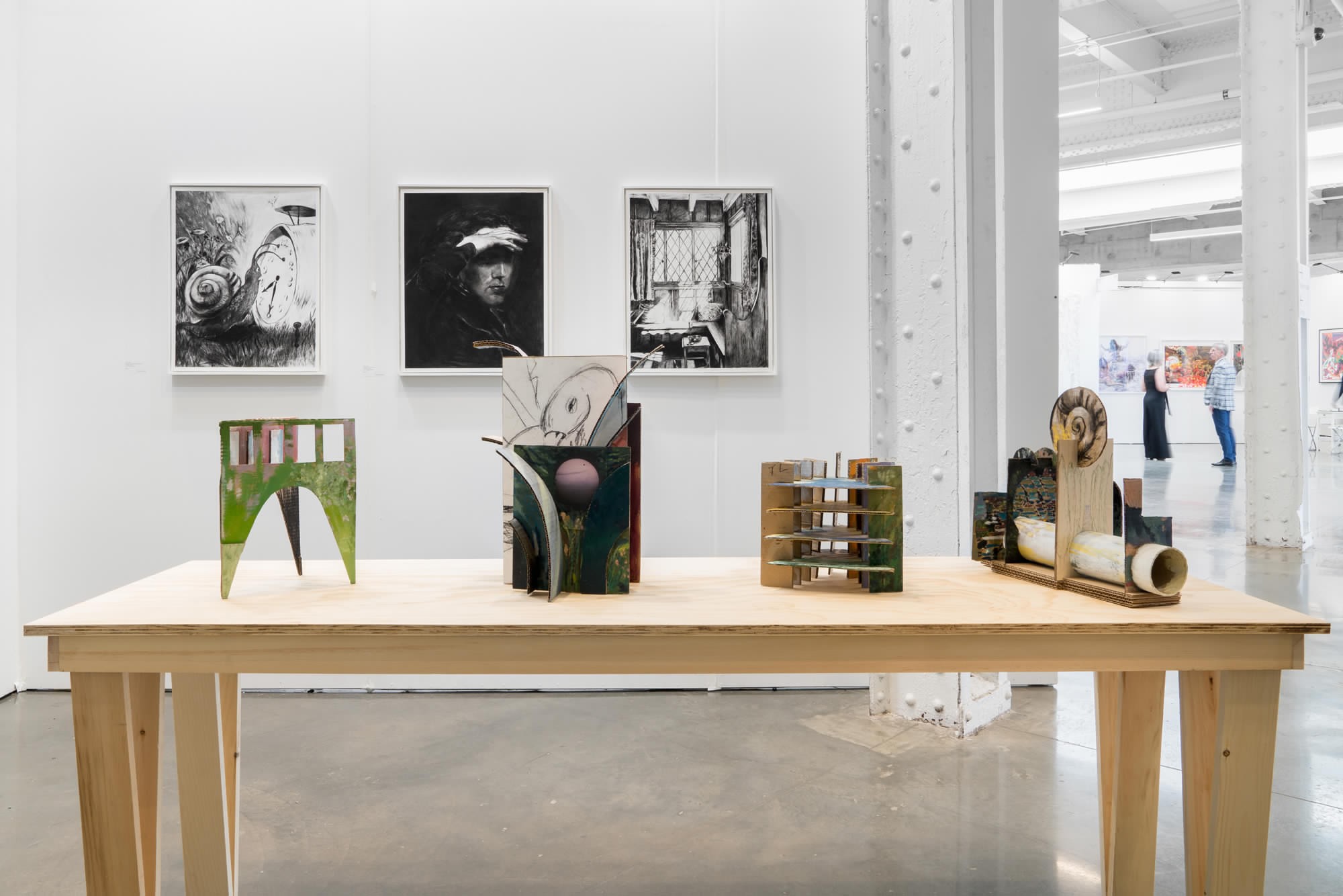 In Durations, Tristan Unrau uses the format of a fair booth to stage an encounter between various moments across art history. The pictures interact as actors or props, influencing or uncovering different aspects of each other’s character. Unrau employs these “actors” as a way of asking what a pictoral impulse might be. We are reminded that creative activity has the capacity not only to create material objects but also the potential to remake a world.